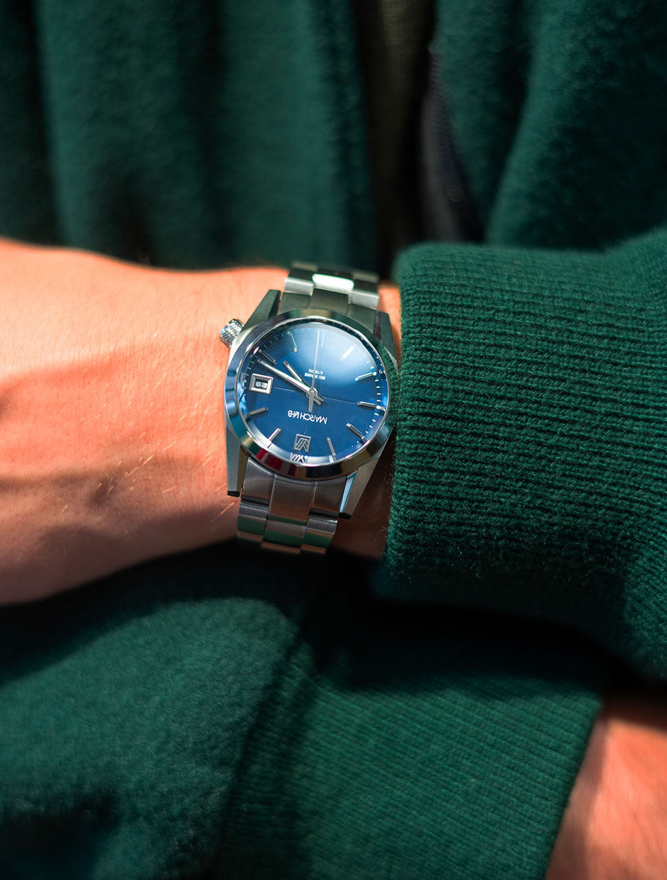 The polished-brushed lugs on the case are sharpened and the subtle flat part around the bezel brings a modern touch to this more classic watch.