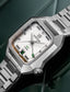 The "glass box" type sapphire crystal has been lowered to refine the overall polished-brushed timepiece, which we have assembled on a new 3-link bracelet perfectly integrated with the case.