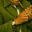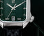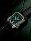 The GRALL model is assembled with a green heavy vertical brushed dial printed with discreet light gray markings and railroad.