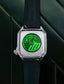 The green skeleton see-thru case-back reveals the G100 movement with the March LA.B M lines perforated on the oscillating mass.