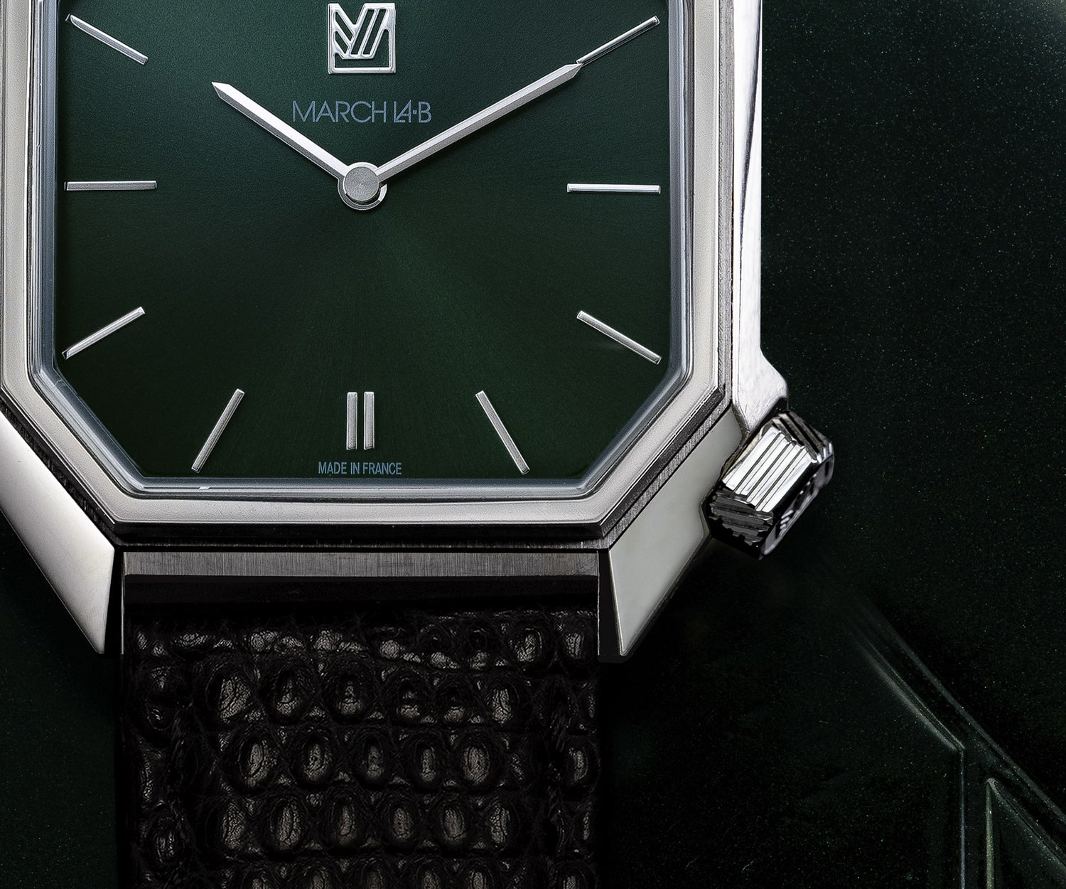 The MANSART's dial is octagonal, like the case. It is intentionally simplified and features slim, elegant hour markers.