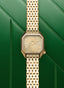Our leather straps with subtle green details are fitted with a pin buckle carefully designed to complement the case of your Lady MANSART. The angles and bevels are present, and the brushed finish is faithfully reproduced.