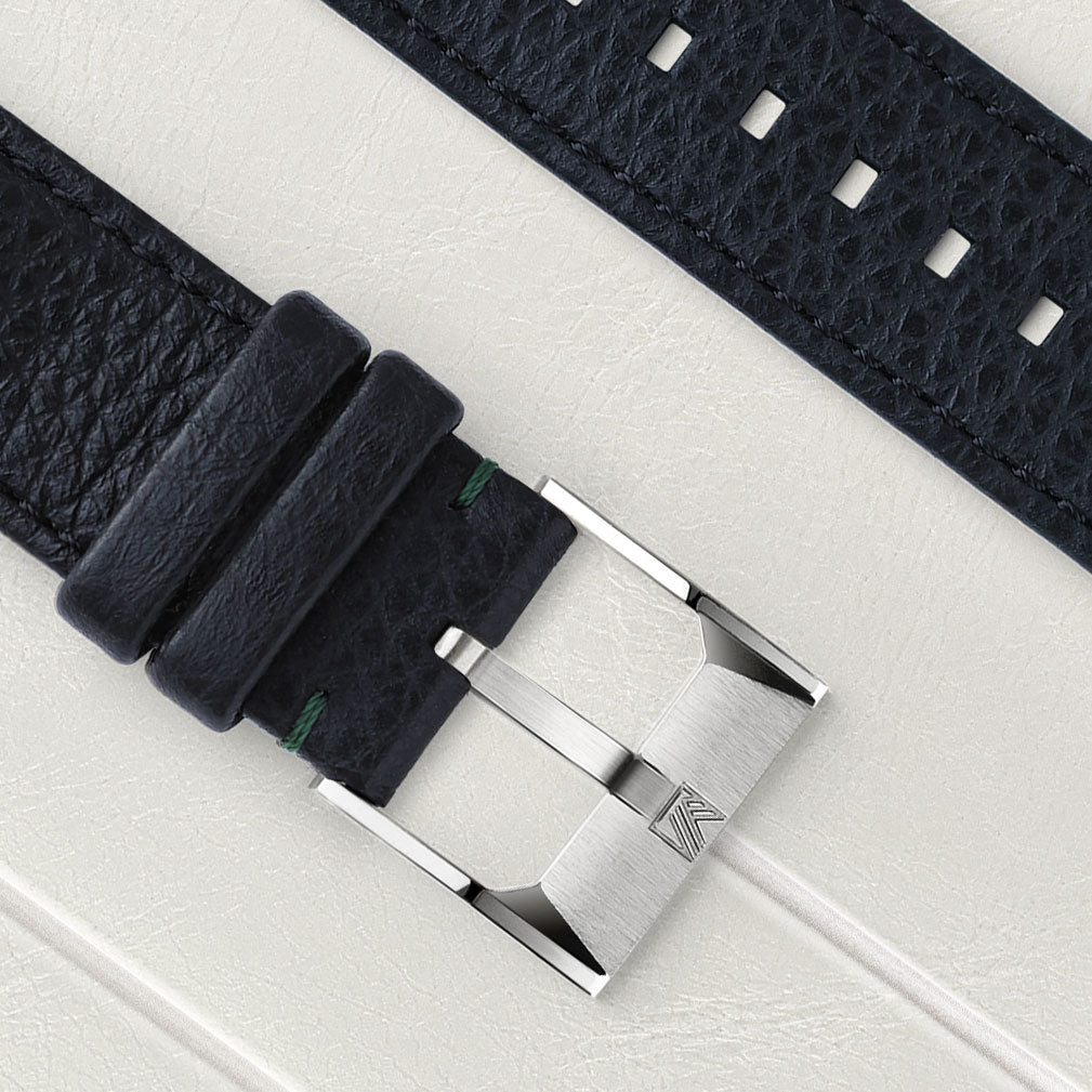 Our bracelets are equipped with a pin buckle that has been carefully designed to fit the shape of your AM2 Slim case. The angles and bevels are present, and the brushed finish is faithfully reproduced.