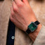 The FOREST model is assembled with a green sunray dial with steel indexes and hands.