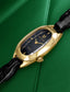 Discover the OBLONGUE Supreme: 20 mm oval March LA.B French ladies' watch with black dial and gold case. This watch is equipped with an ultra-precise Swiss quartz movement assembled in France. Available with the new integrated gourmette bracelet or with an alligator or kid strap made in France. Water-resistant to 5 ATM/ 50M and sapphire crystal.