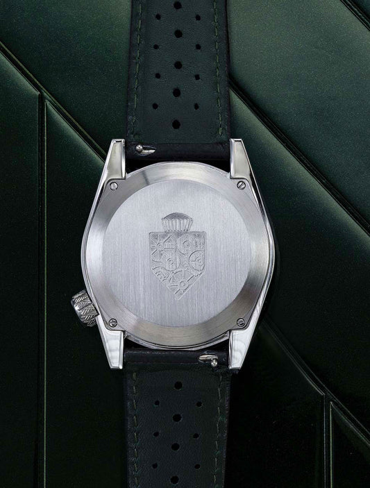 The interior reproduces the spirit of micro-perforations to optimize comfort in case of extreme perspiration. Our leather straps with subtle green details are equipped with a pin buckle that has been carefully designed to match the shape of your AM89's case.