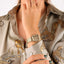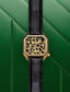 Le cadran de la Lady MANSART est octogonal comme le boîtier. Nous l’avons paré d’un guillochage léopard, chic et raffiné, qui joue avec la lumière et affirme son caractère audacieux. Les index fins et délicats viennent rythmer cette composition, donnant plus de force à cette petite montre-bijou charismatique et unique.