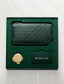 Fabriqué à la main dans le Doubs par les meilleurs artisans maroquiniers, ce dernier est doublé de veau vert hypoallergénique, signature chromatique de la marque.