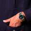 Nos bracelets en cuir aux subtils détails verts sont équipés d'une boucle ardillon qui a été dessinée avec attention pour répondre aux formes du boitier de votre AM89. Les angles et biseaux sont présents et le poli-brossé respecté.