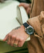 Très robuste, notre bracelet acier est construit de 3 maillons que nous avons taillés pour les rendre plus anguleux et assortis aux multiples biseaux de nos boitiers. L’intérieur reproduit l’esprit des micro-perforations afin d’optimiser le confort en cas de sudation extrême