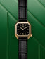 Nos bracelets en cuir aux subtils détails verts sont équipés d'une boucle ardillon qui a été dessinée avec attention pour répondre aux formes du boitier de votre Lady Mansart. Les angles et biseaux sont présents et le poli-brossé respecté.