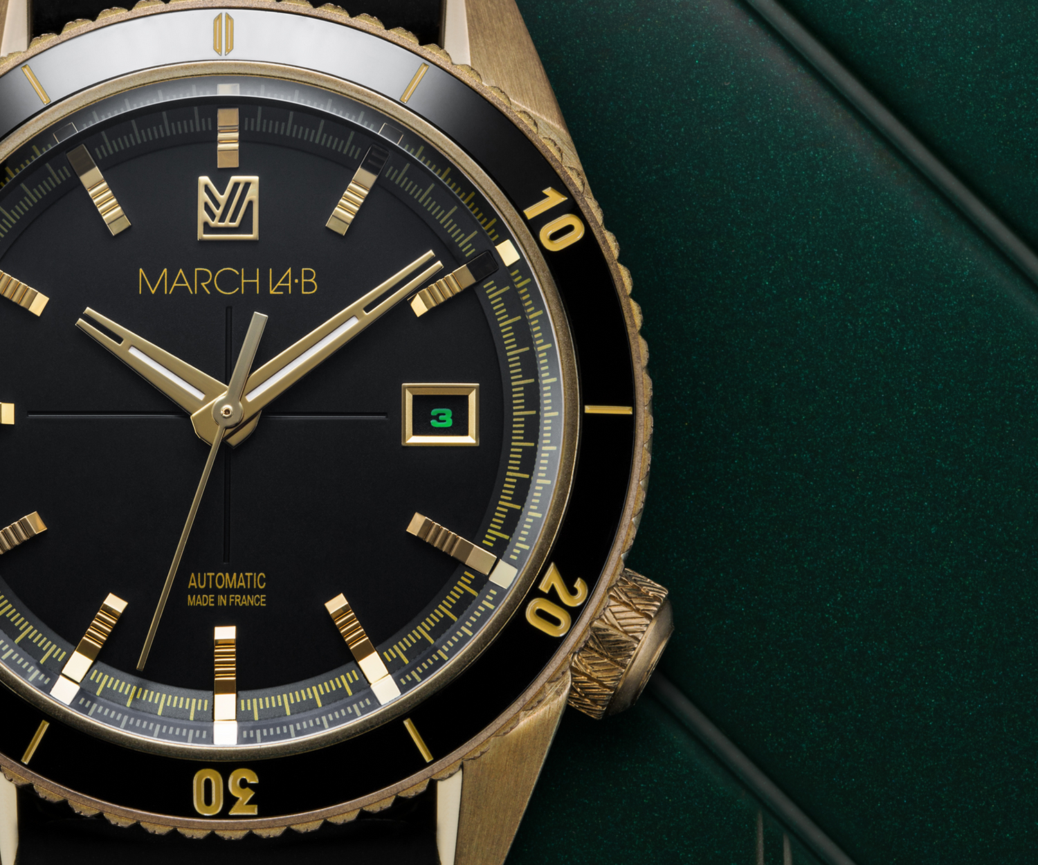 La BRONZE bronze est équipée de notre tout nouveau bracelet en silicone noir.Nous l’avons voulu plus fin et plus souple avec un design reprenant les lignes entrelacées signatures de March LA.B.Ce bracelet est équipé de pompes presto afin que vous puissiez l’interchanger vous même sans outil particulier.Vous allez l’adorer.