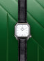 Nos bracelets en cuir aux subtils détails verts sont équipés d'une boucle ardillon qui a été dessinée avec attention pour répondre aux formes du boitier de votre Lady Mansart. Les angles et biseaux sont présents et le poli-brossé respecté.