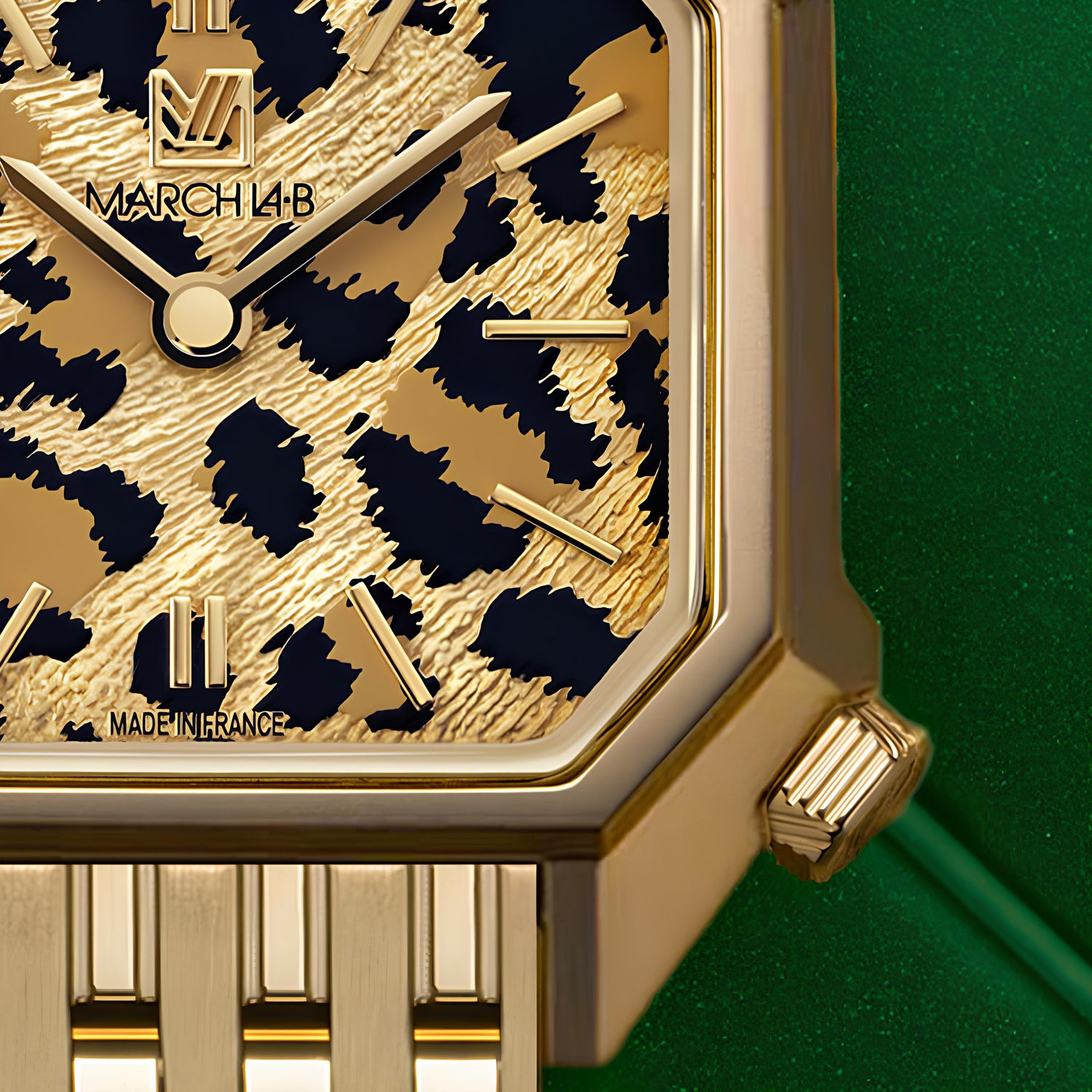 Le cadran de la Lady MANSART est octogonal comme le boîtier. Nous l’avons paré d’un guillochage léopard, chic et raffiné, qui joue avec la lumière et affirme son caractère audacieux. Les index fins et délicats viennent rythmer cette composition, donnant plus de force à cette petite montre-bijou charismatique et unique.