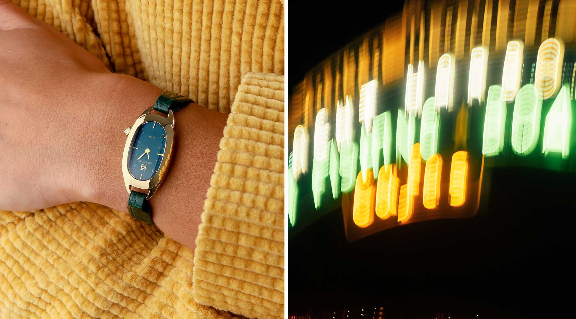 La OBLONGUE est une montre bijou dont la forme définit naturellement le nom comme une évidence artistique. Cette montre de 20 mm adopte une silhouette étirée, plus longue que large, aux extrémités arrondies, se posant avec douceur sur le poignet. Son boîtier aux courbes fluides, accompagné d’un remontoir à 4H et d’un verre aux flancs biseautés, incarne une esthétique contemporaine témoin des années 2020.