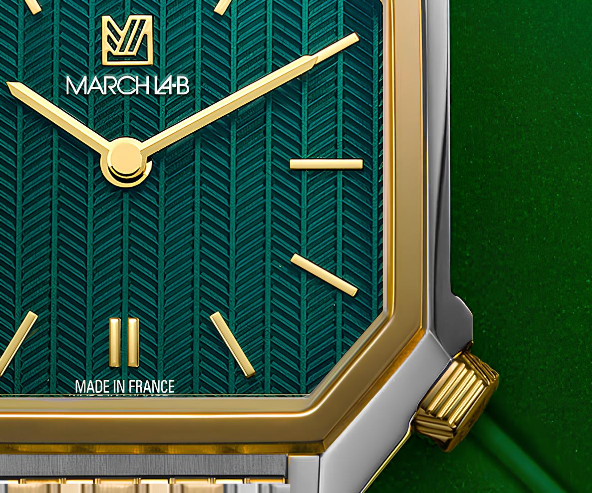 Tous les boitiers des montres March LA.B répondent à des critères de construction scrupuleusement respectés. Invariablement poli-brossés, ils captent la lumière ambiante pour donner vie à votre montre.