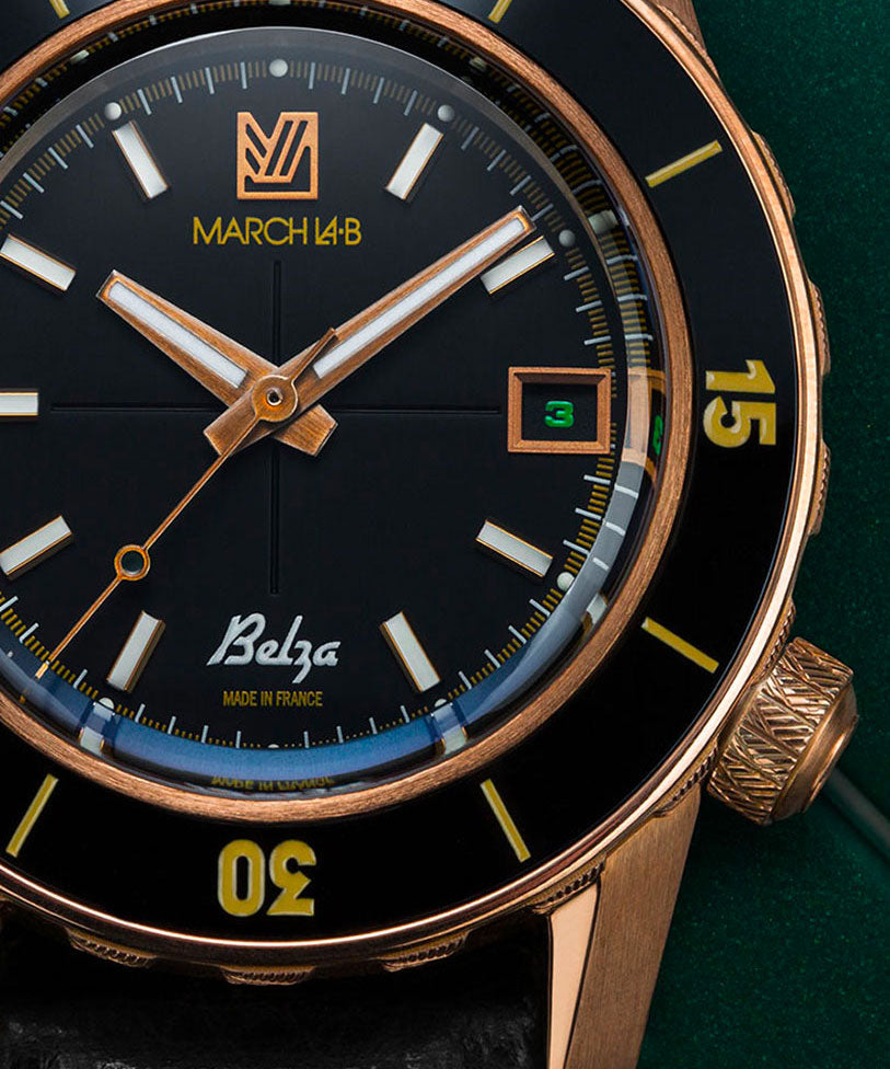 Les lunettes des BELZA Automatiques sont construites en céramique, qui lui confère une forte resistance aux rayures et une lisibilité optimale en toute circonstances.
