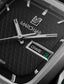 Une montre au cadran noir martelé des hermines symboliques du drapeau breton et assemblée sur un bracelet grainé noir issu de peaux d’élevages de la région.